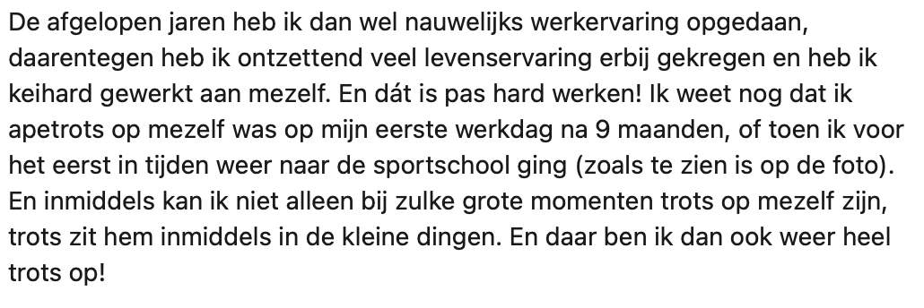 3. Dit betekent echter niet dat ze heeft stilgestaan. Juist niet. Haar persoonlijke groei en overwinningen maakte haar (terecht) trots.