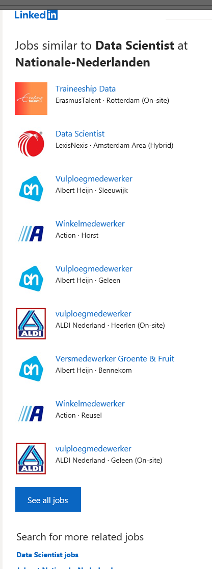 Als je van zoetsappige verhalen houdt, op zoek bent naar clichés om op een tegeltje te zetten of een ‘nieuwe uitdaging’ zoekt, dan neemt LinkedIn ongetwijfeld een groot deel van je schermtijd in beslag. Hier kun je namelijk urenlang door ‘inspirerende’ berichten van oud-klasgenoten scrollen en allerlei vacatures van bedrijven bekijken. Zo zoekt een Reddit-gebruiker via het carrièreplatform naar een baan als data scientist. Maar de baansuggesties die deze werkzoekende krijgt, werken niet bepaald mee.