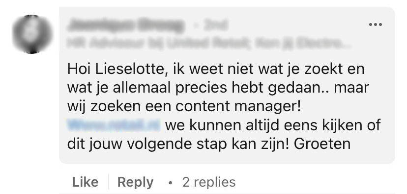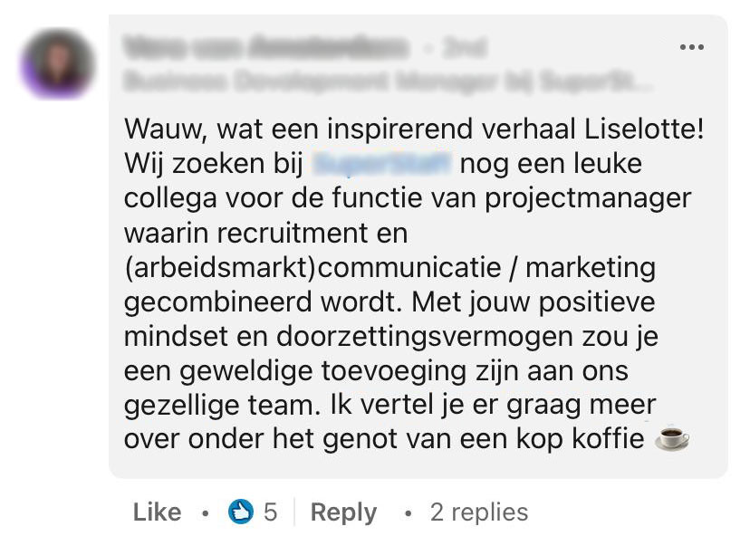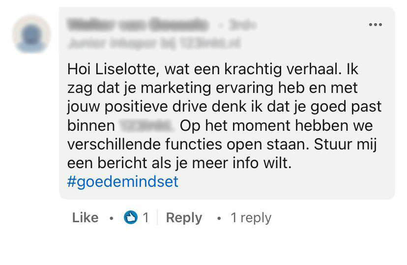 1. Het bericht van Liselotte ging al snel LinkedIn over.