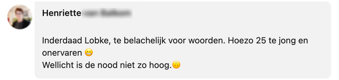 7. Als we de reacties onder Lobkes bericht mogen geloven, heeft ze nu binnen no-time een nieuwe baan