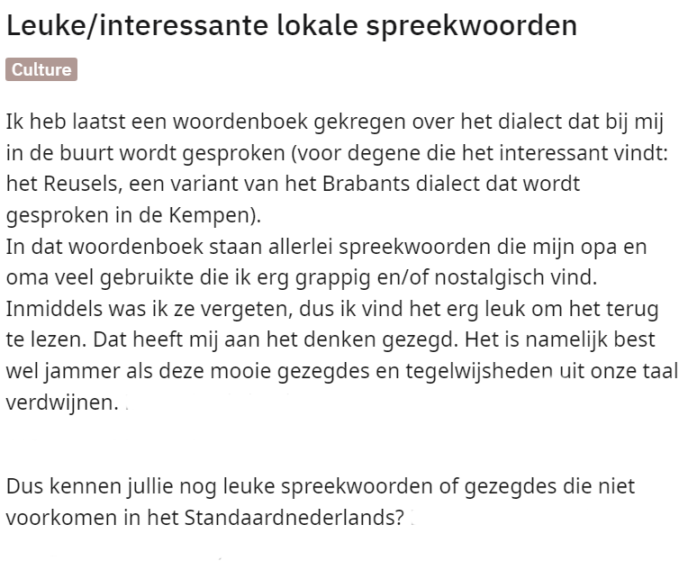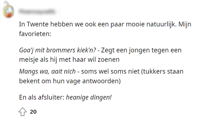 Ondanks dat we helemaal niet zo’n groot land zijn, hebben we in de loop der jaren aardig wat gekke dialecten en spreekwoorden opgebouwd. De volgende Reddit-gebruiker vond het zonde dat we deze spreekwoorden steeds meer vergeten. Daarom stelde hij de volgende vraag om de spreekwoorden en gezegdes die niet Standaardnederlands zijn toch nog nieuw leven in te blazen.