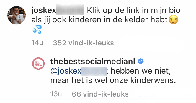 Sorry wij kunnen er ook niks aan doen. Maar Instagram lijkt de laatste tijd weer overspoeld door botte dames die hun diensten aanbieden in de reacties. Wij vonden het tijd voor een tegengeluid en vroegen jullie om je beste insta-bot imitatie te geven onder onze post. Dat deden jullie met verve!