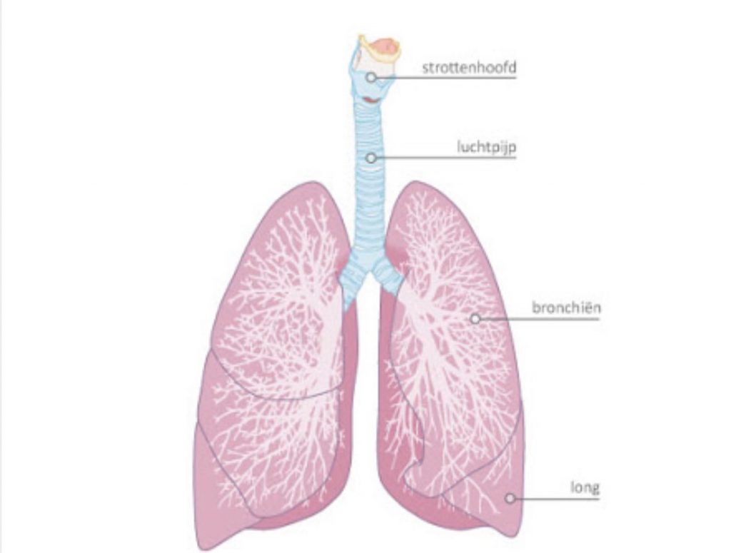 De luchtwegen (bronchieen) zorgen voor het transport van zuurstof naar de longblaasjes.