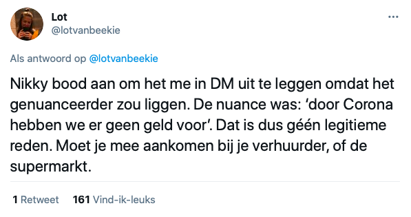 5. Tot slot heeft Lot wel een uitleg gekregen van degene die het bericht heeft gepost.
