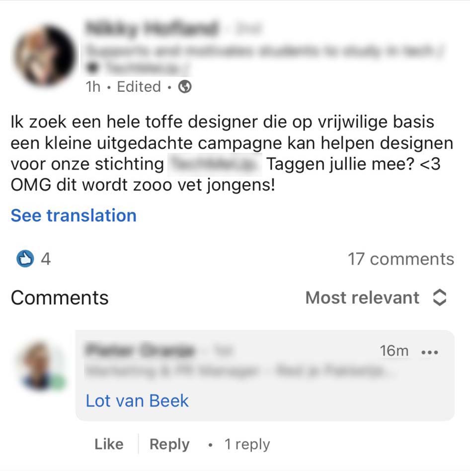 1. De aanleiding van Lots bericht was dit LinkedInbericht waarin ze genoemd werd.