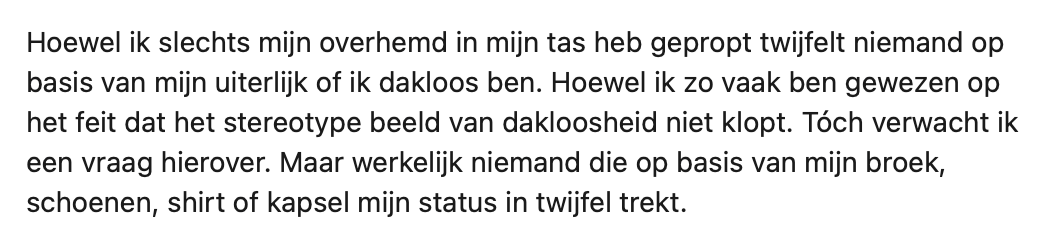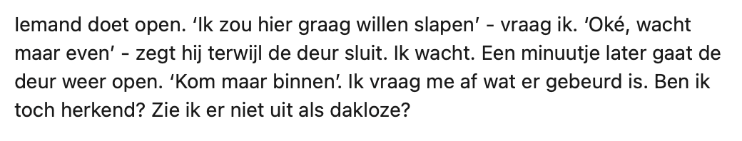 4. Maarten is bang dat mensen direct zullen zien dat hij helemaal niet dakloos is.