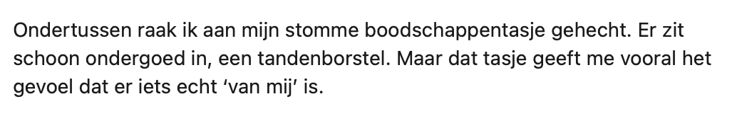 5. Doordat hij weinig bij zich draagt, merkt hij dat hij gehecht raakt aan hetgeen wat hij wél heeft.
