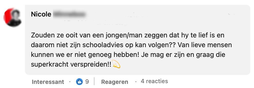 7. Nicole heeft het vermoeden dat mannen dit minder snel zullen horen.