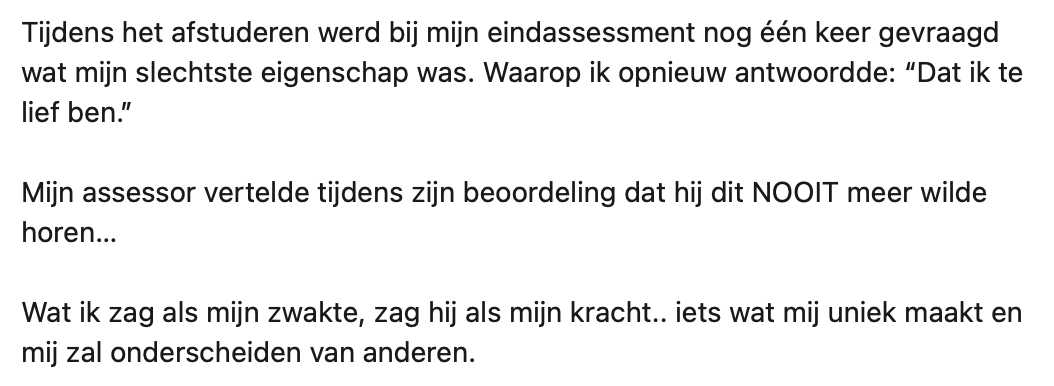 8. Tessa maakt nog even duidelijk dat lief zijn niets te maken heeft met onzekerheid.