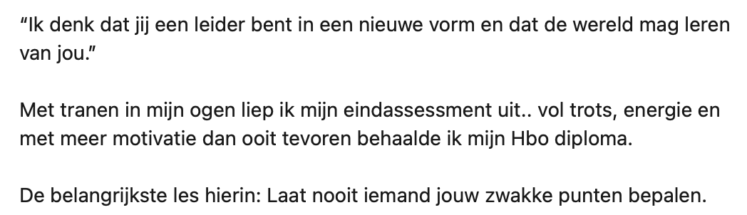 3. Na heel hard werken haalt ze dat uiteindelijk toch haar doel.