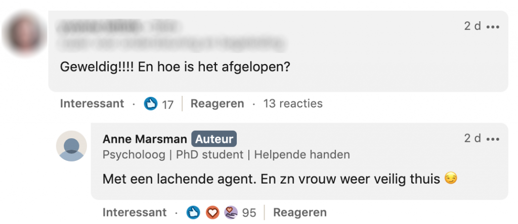 Anne kreeg duizenden likes en reacties op haar bericht. ‘’Iedere seconde komt er wel een reactie binnen. Ik vind het leuk om te zien dat het zo wordt opgepakt. Hoe dan ook, we zijn gelukkig veilig thuisgekomen.’’