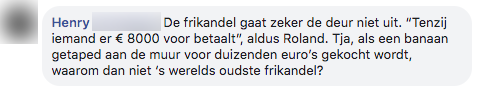 3. Waar de meeste mensen die frikandel voor later (prima katermaal) zouden bewaren of weg zouden gooien, besloot Roland de frikandel ‘eervol’ aan zijn garagedeur te timmeren. Als ware een relikwie uit het afgelopen millennium.