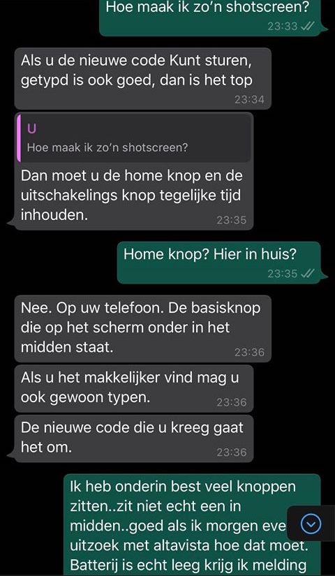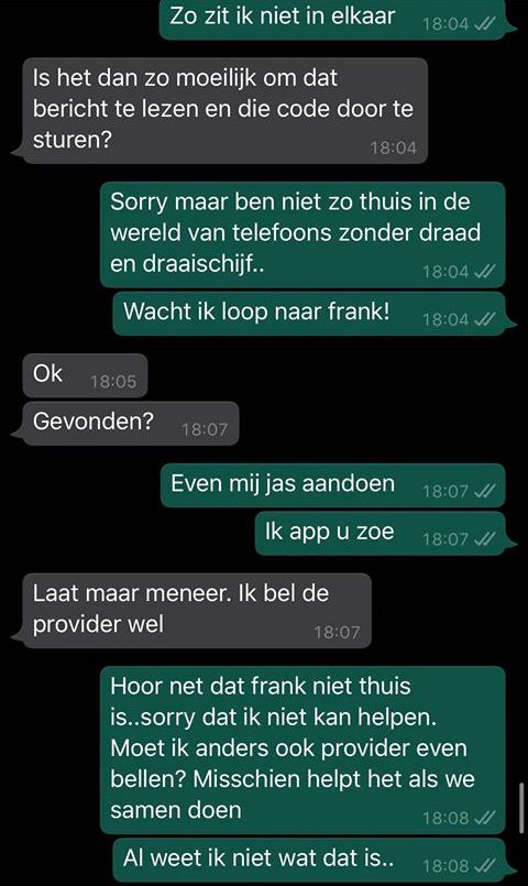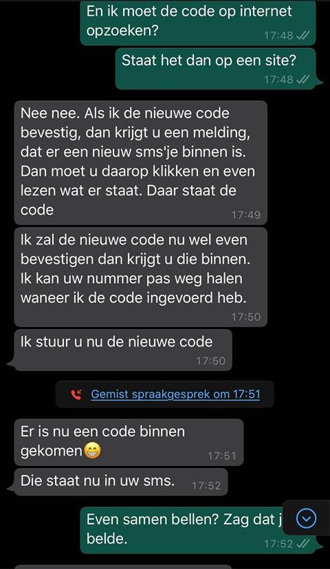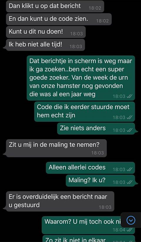 4. Hoe moeilijk kan het zijn om die code te sturen, denk de oplichter. Hoe kan ik dit gesprek zo lang mogelijk rekken, denkt Rik.