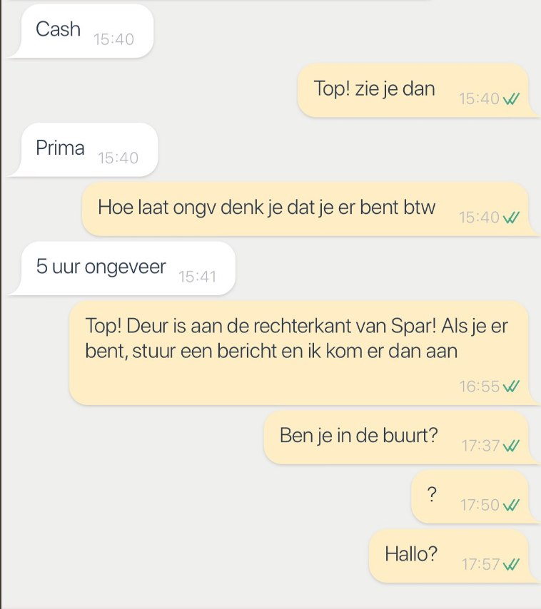 Het internet zou een stuk saaier zijn zonder de bijzondere gesprekken en advertenties op Marktplaats (hier nog zo’n schoolvoorbeeld). Het is alleen wel een beetje jammer als mensen hun afspraken niet nakomen, niet betalen of niet op komen dagen. Want voor je het weet blijf je de middag thuis met je goede gedrag maar blijkt dat vooral voor de kat zijn viool te zijn geweest. Dan kun je balen, maar je kunt ook een ’tegenprestatie’ verzinnen. Dat deed Zakaria vorig jaar, en dat vinden wij een throwback waard op deze donderdag.