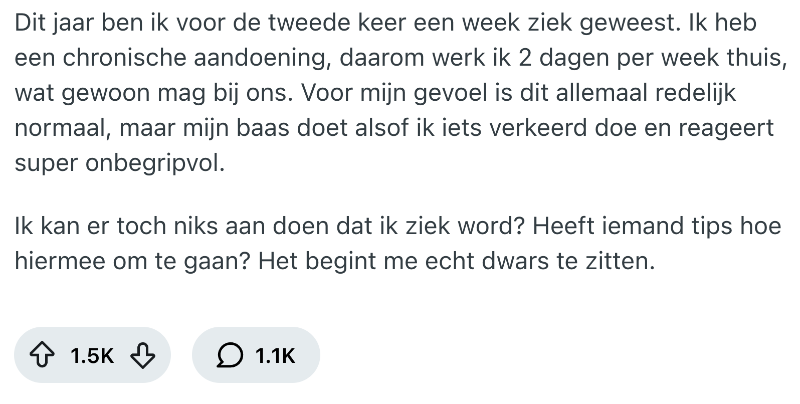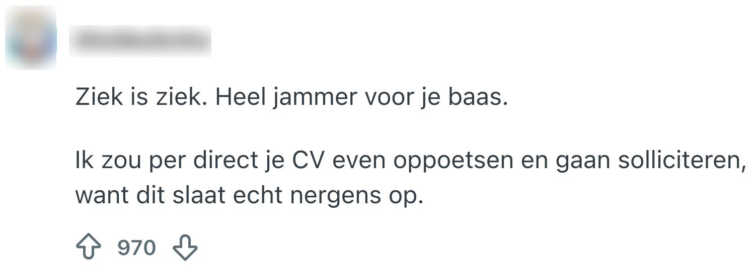 Je managers hoeven echt niet altijd je beste vrienden te zijn. Zo halen ze het bloed onder je nagels vandaan wanneer ze verwachten dat iedereen alles uit de handen laat vallen als zij binnenkomen, of wanneer ze werkelijk overal van op de hoogte willen zijn zonder te weten waar het nu eigenlijk over gaat. Toch vallen al die frustraties in het niet bij de bizarre reactie van déze manager wanneer een medewerker zich ziek meldt. Online is iedereen het erover eens: zo werkt dat niet.