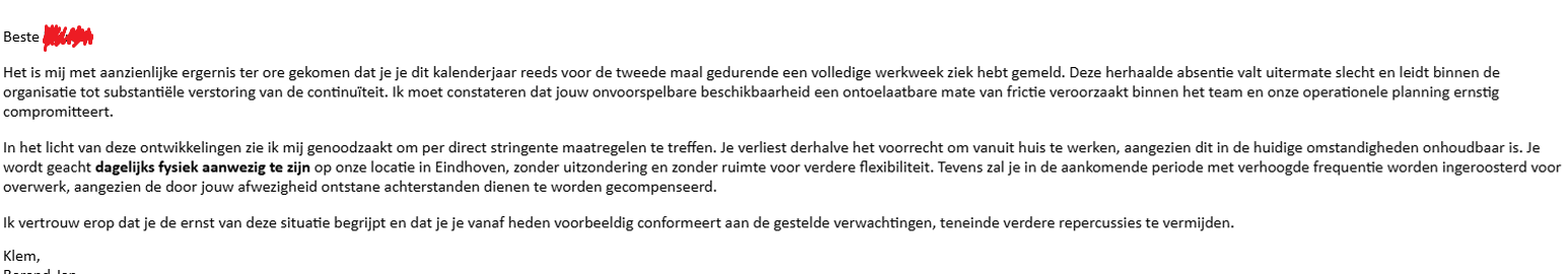 Werkgever gaat door het lint na ziekmelding en laat medewerker verbijsterd achter