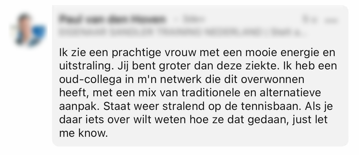 8. En inmiddels heeft Mandy’s verhaal zoveel mensen bereikt dat ze ook door vele onbekenden een hart onder de riem gestoken krijgt.