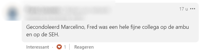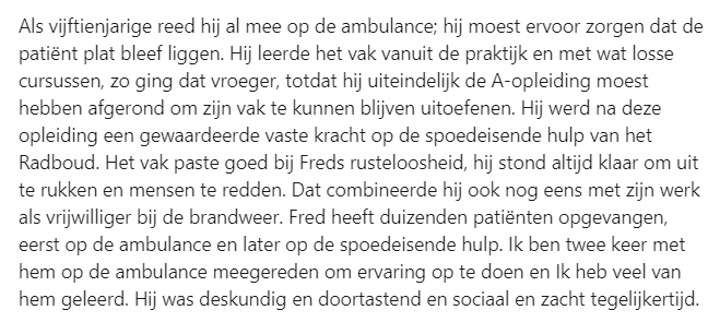 7. Maar er zijn vooral veel lovende woorden voor Fred. Hij zal gemist worden.
