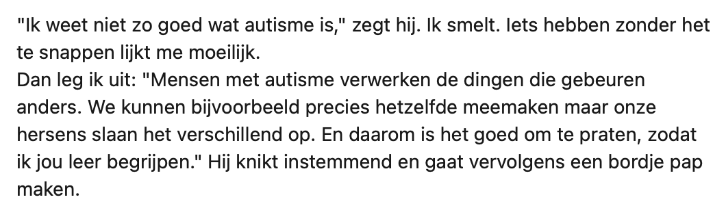4. Wanneer hij aangeeft dat hij zelf weinig van autisme snapt, weet Marieke precies wat ze moet doen.