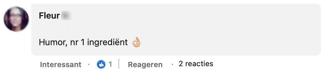 5. Ze deelt dat humor in veel situaties mensen kan verbinden en dat je zo stapje voor stapje dichterbij mensen kan komen.