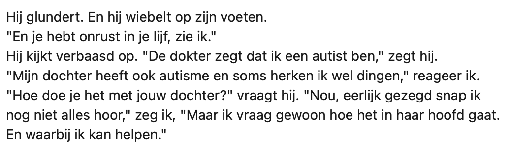4. Wanneer hij aangeeft dat hij zelf weinig van autisme snapt, weet Marieke precies wat ze moet doen.