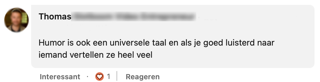 5. Ze deelt dat humor in veel situaties mensen kan verbinden en dat je zo stapje voor stapje dichterbij mensen kan komen.