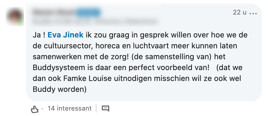 2. Er wordt enthousiast gereageerd op haar post. Ook hebben mensen dezelfde ideeën.