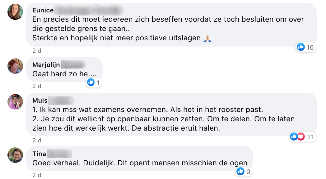 Voor Marjon kwam de confrontatie met het ‘reisgedrag van corona’ dusdanig dichtbij, dat ze in de digitale pen klom op Facebook. Om te laten zien dat je pas in de gaten hebt hoe snel het kan gaan als het jezelf overkomt. Inmiddels gaat dit verhaal bijna harder viraal dan ome corona zelf. Er zit dan ook een behoorlijke les in. Want ondanks dat je soms bewust bezig denkt te zijn, kan het kortetermijndenken de overhand nemen. En dit verhaal laat dat kraak- en kraakhelder zien.
