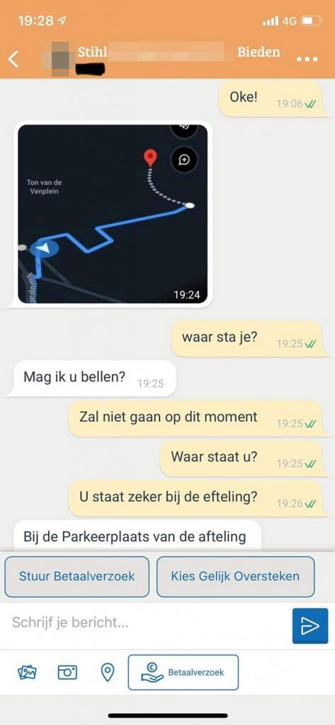 7. Iemand heeft een kettingzaag te koop staan op Marktplaats, en krijgt een bod.