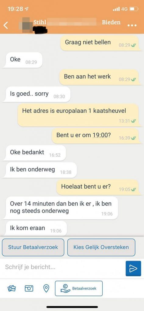 7. Iemand heeft een kettingzaag te koop staan op Marktplaats, en krijgt een bod.