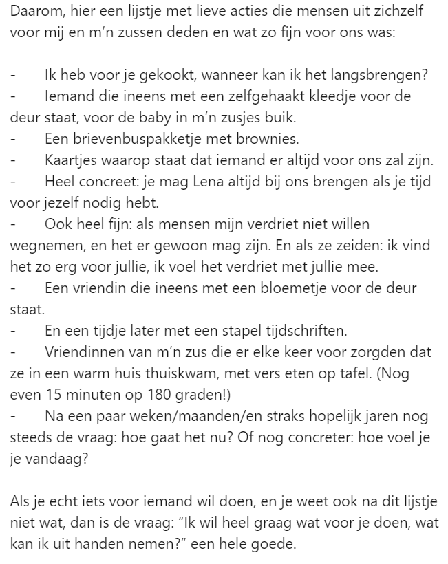 3. Gelukkig heeft Mattie hulp gekregen waar ze erg veel aan heeft gehad. Ze deelt dit graag met mensen die een ander willen helpen. Want het kan best lastig zijn om iets waardevols toe te voegen voor iemand die rouwt.