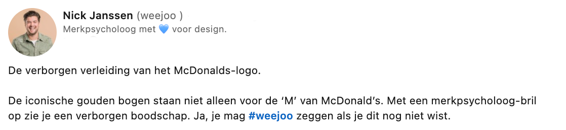 1. Nick is merkpsycholoog, dus hij doet wel vaker opmerkelijke ontdekkingen rondom merken. Toch overtreft de geheime boodschap van McDonald’s alle verwachtingen.