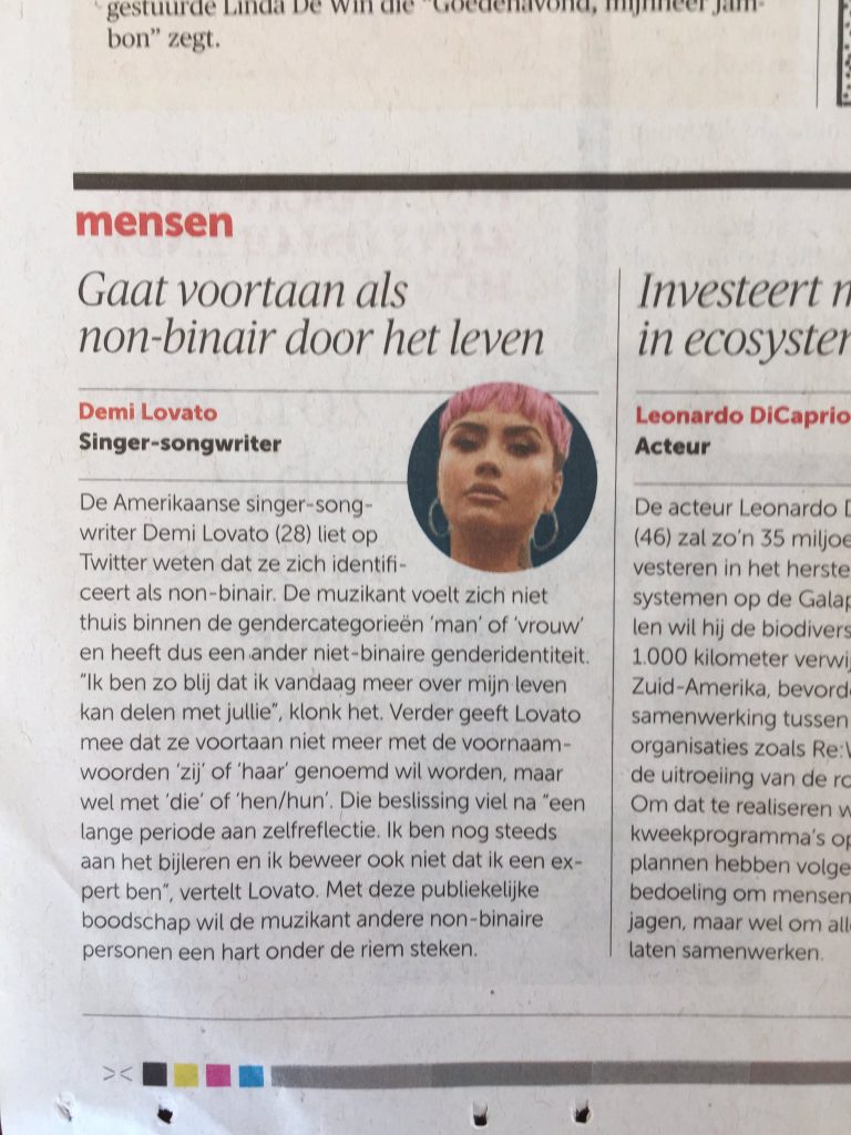 Afgelopen week deelde Demi Lovato met de wereld zich te identificeren als non-binair. Dit betekent dat de artiest niet als vrouw, noch als man door het leven zal gaan. Ook de Nederlandse presentator Raven van Dorst deelde vorige week eenzelfde boodschap, die gepaard ging met een nieuwe voornaam. Hoewel de non-binaire voornaamwoorden voor sommige mensen nog wat verwarrend kunnen zijn, lijkt het alsof er steeds meer respect en begrip voor komt. Helaas blijft er een grote groep mensen die het weigert om hieraan mee te werken. De media speelt een grote rol in het normaliseren van de voornaamwoorden waarmee non-binaire mensen aangesproken willen worden. Maar ook daar gaat het nog lang niet altijd goed.