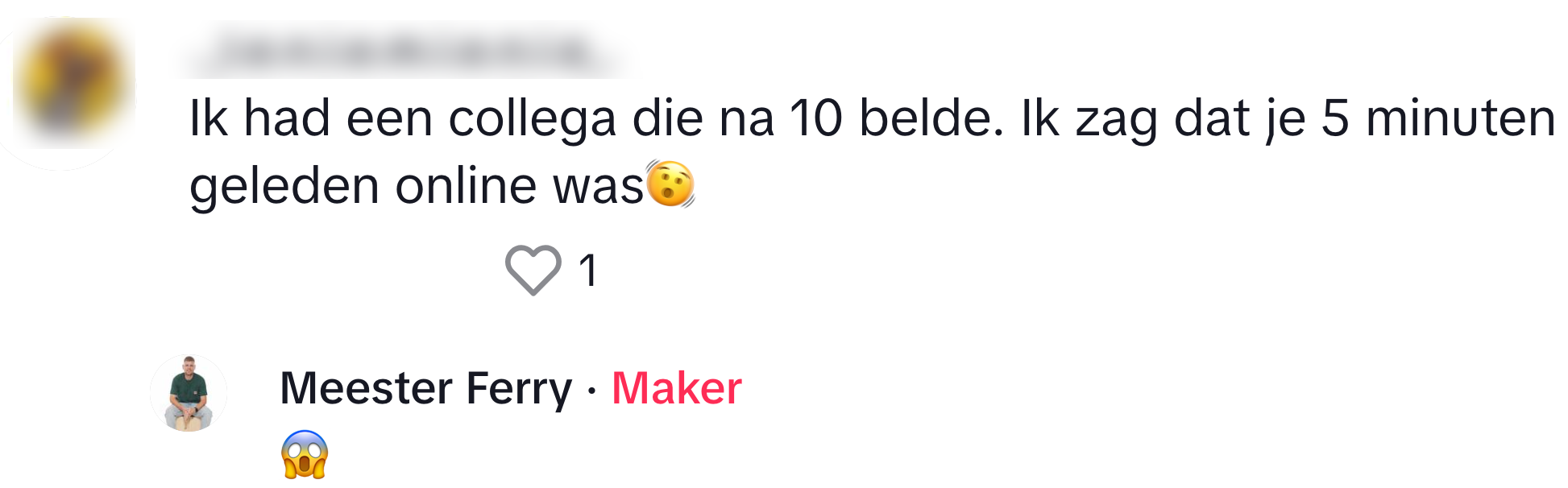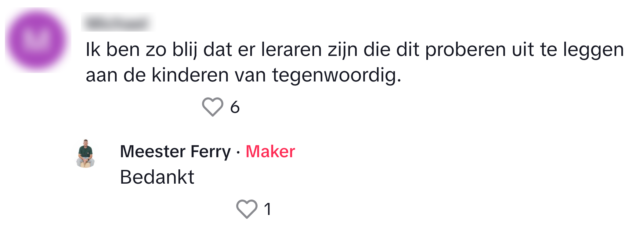 2. Ferry krijgt veel duimpjes en hartjes voor zijn reactie.