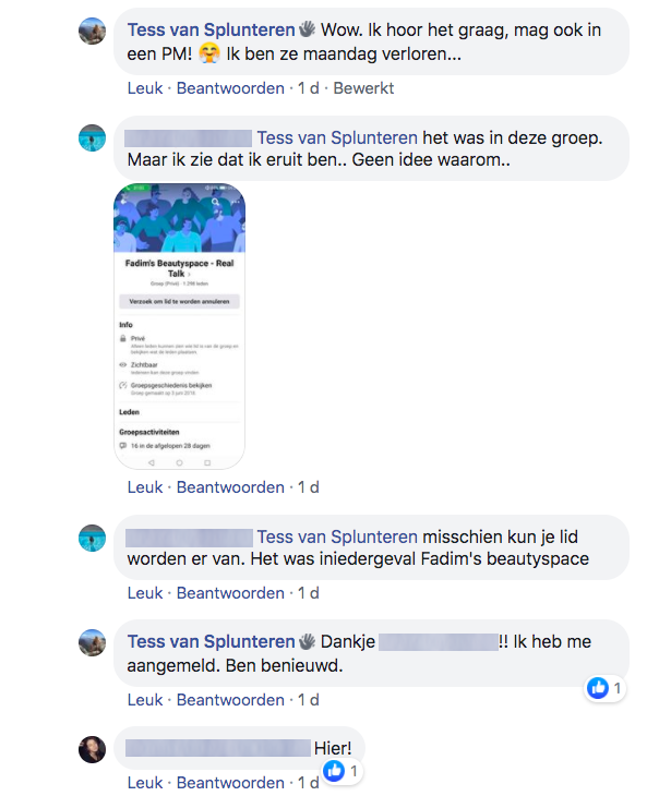 2. En in die groep blijven we even hangen. Er wordt met Tess mee gebaald, maar kijk eens even naar die onderste comment.