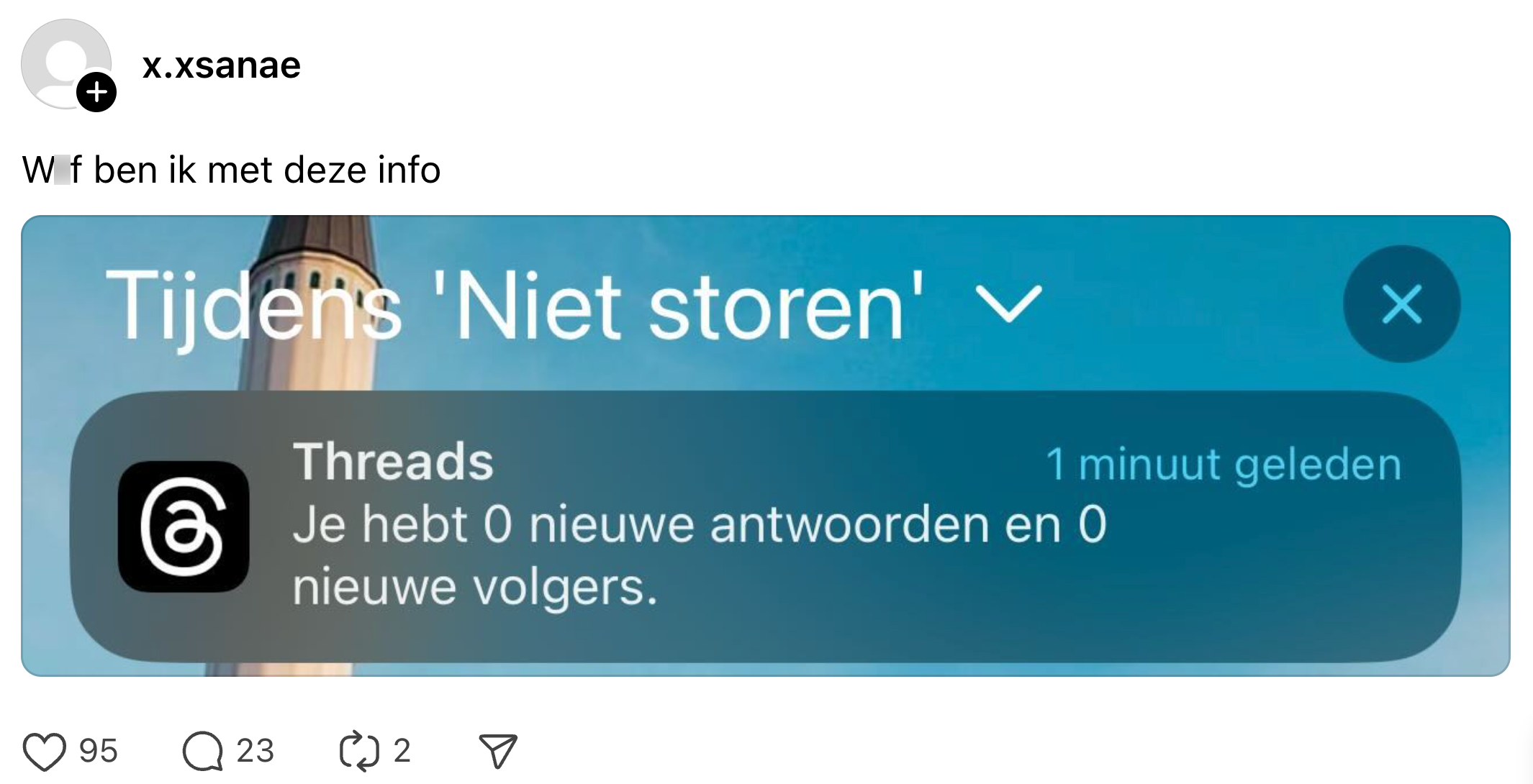De kans is groot dat je weleens een melding van een social media platform krijgt. Zo weet je precies of iemand je is gaan volgen, hoeveel mensen je bericht leuk vinden en of iemand in je DM’s is geslided. Toch kunnen zulke berichten soms vervelend zijn, bijvoorbeeld als een bedrijf je maar blijft uitnodigen voor hun uitzendingskanaal en je inmiddels honderd berichten hebt. Dan kijk je toch even raar op. Sanae krijgt een opmerkelijke melding van Threads, maar staat met haar mond vol tanden.
