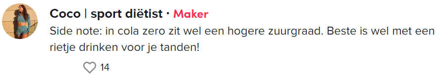 1. Coco legt in de video uit wat haar mening is over Cola Zero.