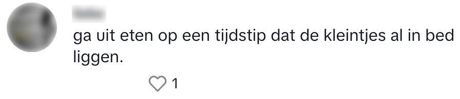 Een restaurant is dé plek waar je samen met je partner, vrienden of familie naartoe gaat om eens lekker op je wenken bediend te worden. Je hoeft niet te koken en geen enkele stap te zetten om die (non-)alcoholische versnapering te bemachtigen. In alle rust kun je genieten van allerlei lekkernijen, totdat het kind van je achterbuurman het ineens op een krijsen zet. Daar ga je… Niet bepaald ideaal, en daarom pleiten deze TikTok-gebruikers voor kinderloze restaurants. Maar mensen in de comments zijn het daar niet helemaal mee eens.