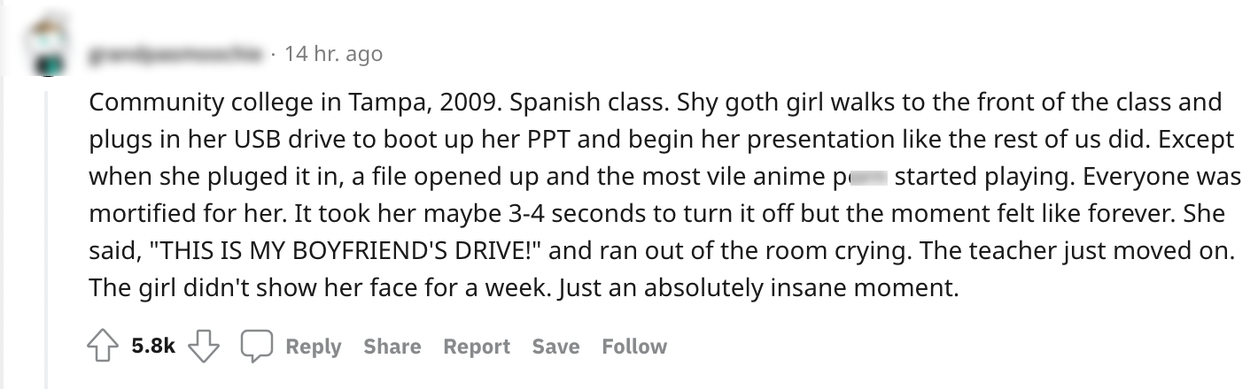 Sommige dingen die je meemaakt krijg je maar moeilijk van je netvlies. In dat geval zijn er tegenwoordig twee opties: of je gaat erover praten met je psycholoog, of je maakt een anoniem Reddit-account aan om dit met de rest van de wereld te delen. Deze mensen kozen voor optie twee.