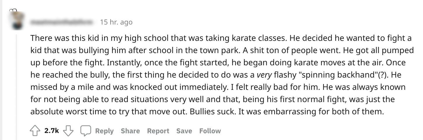 8. Klinkt als een filmscenario, maar helaas verliest de pestkop niet áltijd in dit soort verhalen.