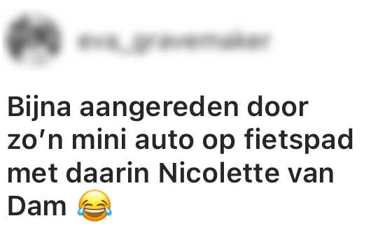 3. Aan de andere kant van het aspect is daar Nicolette van Dam, die zélf bijna iemand aanreed.