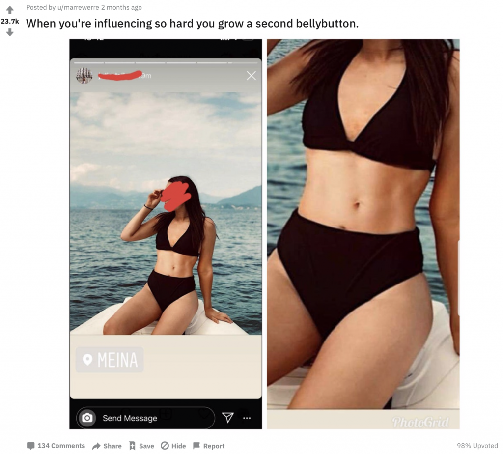 Lang niet iedereen is goed met Photoshop, maar dat hoeft ook niet. Lang niet iedereen plaats bewerkte foto’s op Instagram, maar dat hoeft ook niet. Maar wanneer je én niet zo handig bent met Photoshop én wel gewoon bewerkte foto’s op Insta gooit, dan kan het grandioos fout gaan.