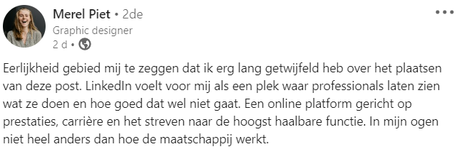 2. Ondanks haar twijfels besluit ze toch nog het bericht te posten.
