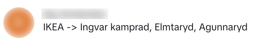 4. Mocht je hier geen (Zweedse) bal van snappen: Ingvar Kamprad is de oprichter van IKEA, Elmtaryd is de boerderij waar hij opgroeide en Agunnaryd is het dorp dat daar dichtbij ligt.