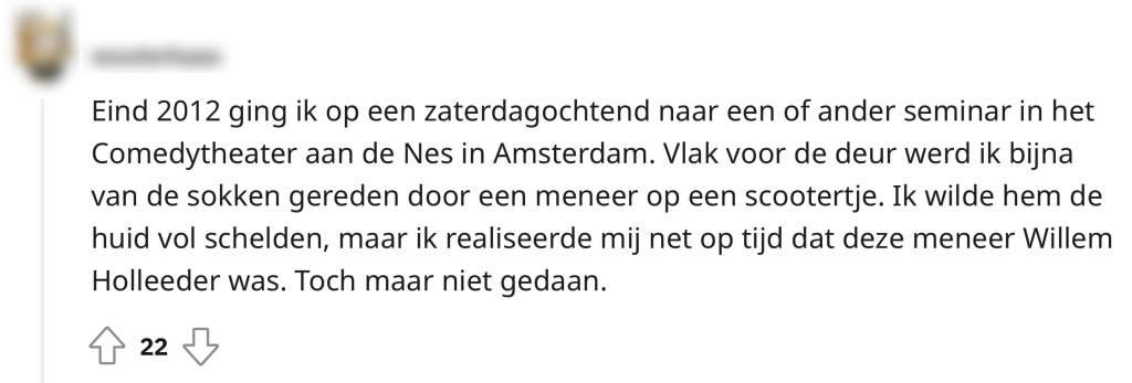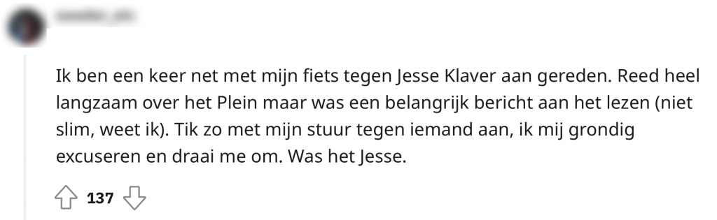 Bekende Nederlanders zijn natuurlijk ook gewoon mensen, maar toch staan velen wel even te kijken als ze ze in het wild tegenkomen. Sommigen vragen om handtekeningen of willen vierhonderd selfies maken, terwijl anderen liever op gepaste afstand een ‘staring contest’ beginnen. Het is natuurlijk ook heel vreemd dat deze wezens gewoon op straat lopen en boodschappen doen. Iemand op Reddit is benieuwd wat jullie meest bijzondere ontmoetingen zijn met BN’ers en uit de antwoorden blijkt dat niet elke BN’er goed bekendstaat.