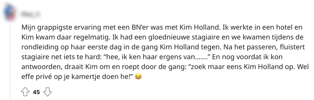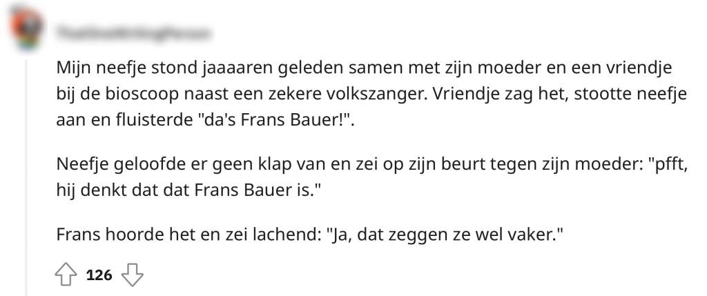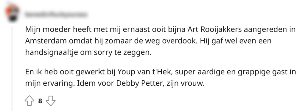 Bekende Nederlanders zijn natuurlijk ook gewoon mensen, maar toch staan velen wel even te kijken als ze ze in het wild tegenkomen. Sommigen vragen om handtekeningen of willen vierhonderd selfies maken, terwijl anderen liever op gepaste afstand een ‘staring contest’ beginnen. Het is natuurlijk ook heel vreemd dat deze wezens gewoon op straat lopen en boodschappen doen. Iemand op Reddit is benieuwd wat jullie meest bijzondere ontmoetingen zijn met BN’ers en uit de antwoorden blijkt dat niet elke BN’er goed bekendstaat.