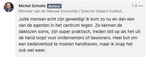 1. Op LinkedIn plaatst Michel deze post, waarin hij beschrijft wat hij zag in Amsterdam.