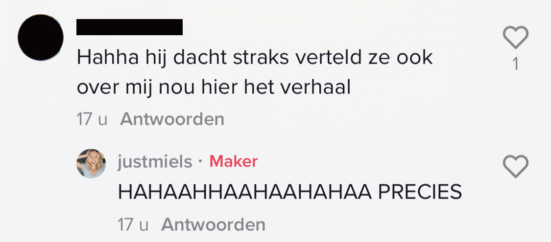 Mila timmert hard aan de weg met haar TikTok-account waarmee ze inmiddels al meer dan 50k volgers heeft verzameld. Op TikTok staat ze bekend onder de naam @JustMiels, maar waar ze ook bekend om staat zijn haar grappige Tinder– en dating verhalen. In de korte video’s vertelt ze haar volgers over de gekke of hilarische dingen die ze meemaakt in haar zoektocht naar de liefde. Wij smullen van de leuke verhalen en daarom laten we ze graag aan je zien.
