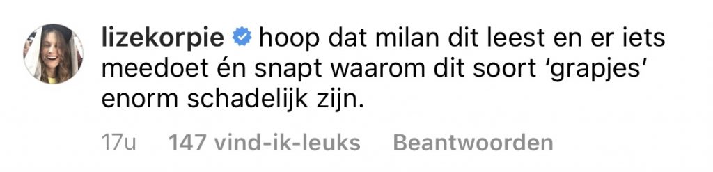 4. Ook het de Instagram pagina @broodjekaasmetsambal deelt een post over de uitspraken van Milan.