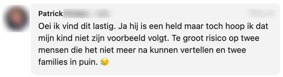 7. Patrick had liever gehad dat zijn kind niet hetzelfde zou doen, omdat het enorm gevaarlijk is.